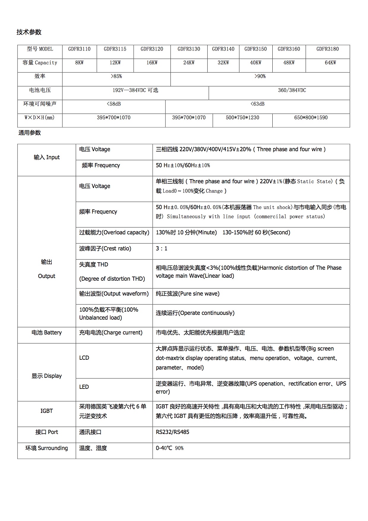 GDFR31 10KL-80kL工频在线式三进单出系列产品介绍及应用领域